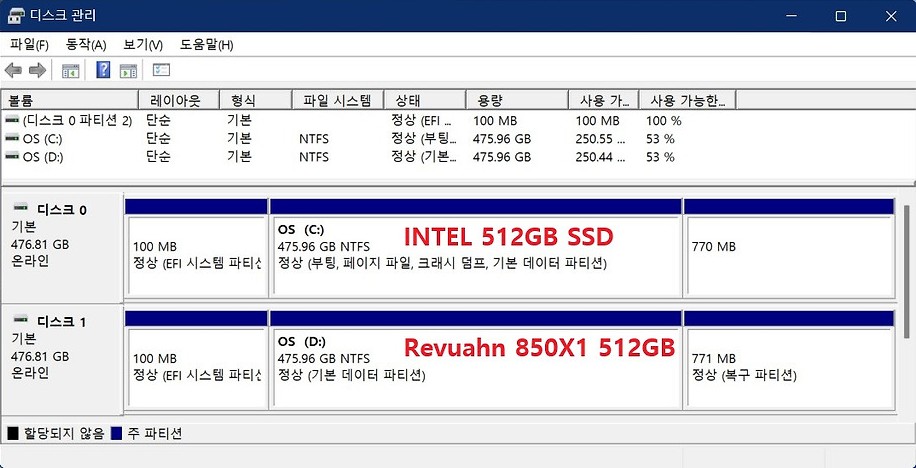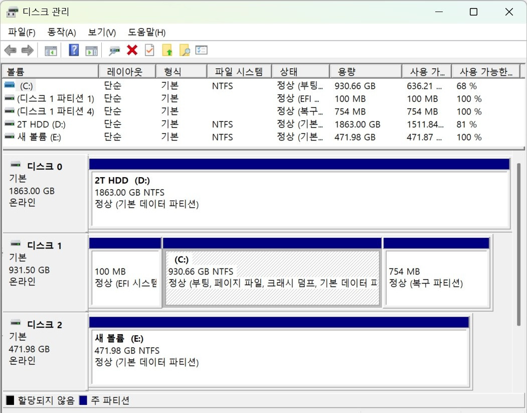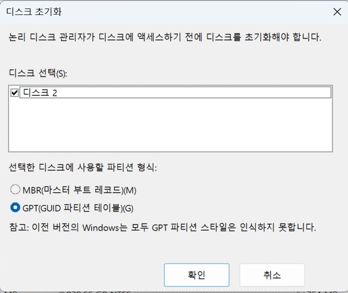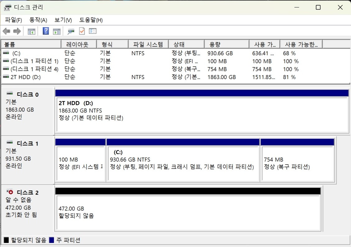 >>>>> 6. 디스크 관리자를 다시 실행한다. <<<<<