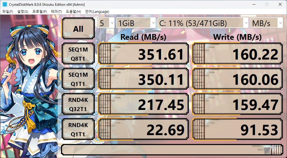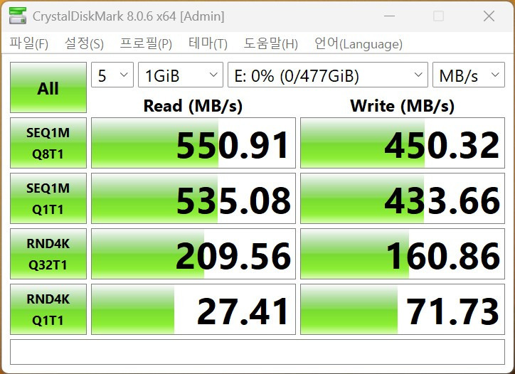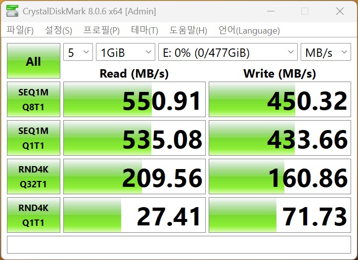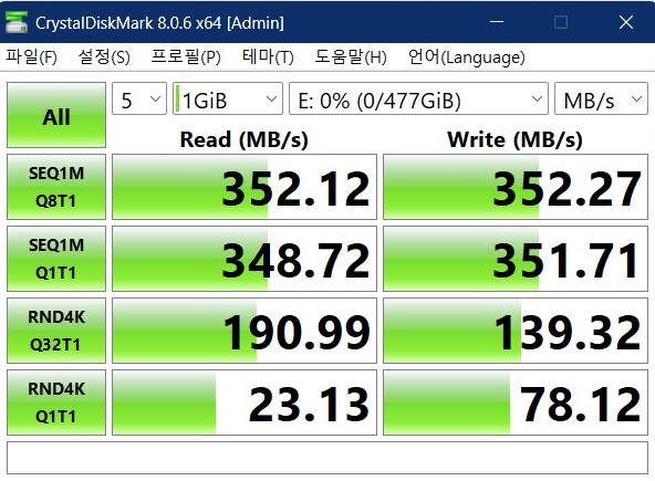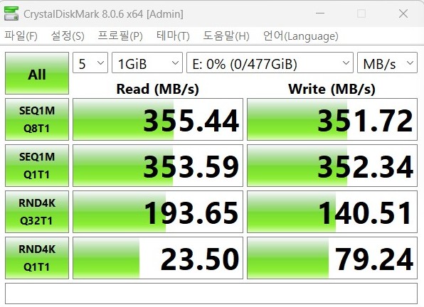 >>>> 3. 크리스털 디스크마크에서 수치상 속도 조금 떨어짐