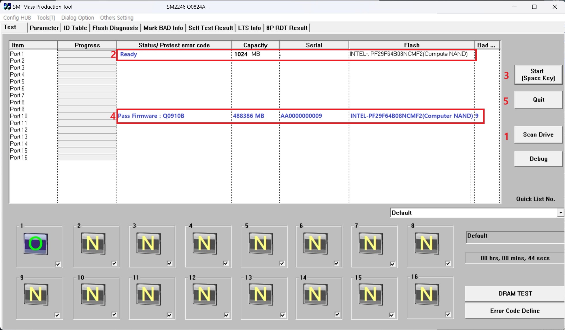 > SM2246EN 컨트롤러와 인텔 29 F64 B08 NCMF2 NAND를 사용한