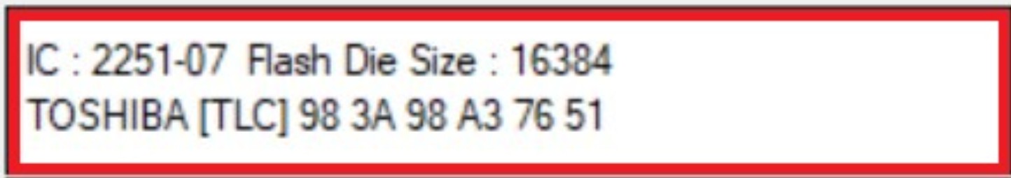 Flash ID code: 983A98A37651 - Toshiba TC58TEG7THLTA00 [TLC-16K]