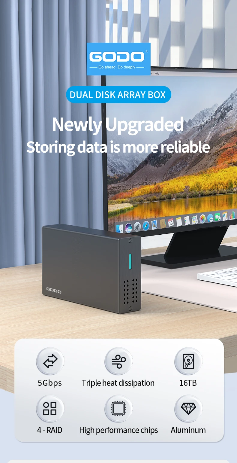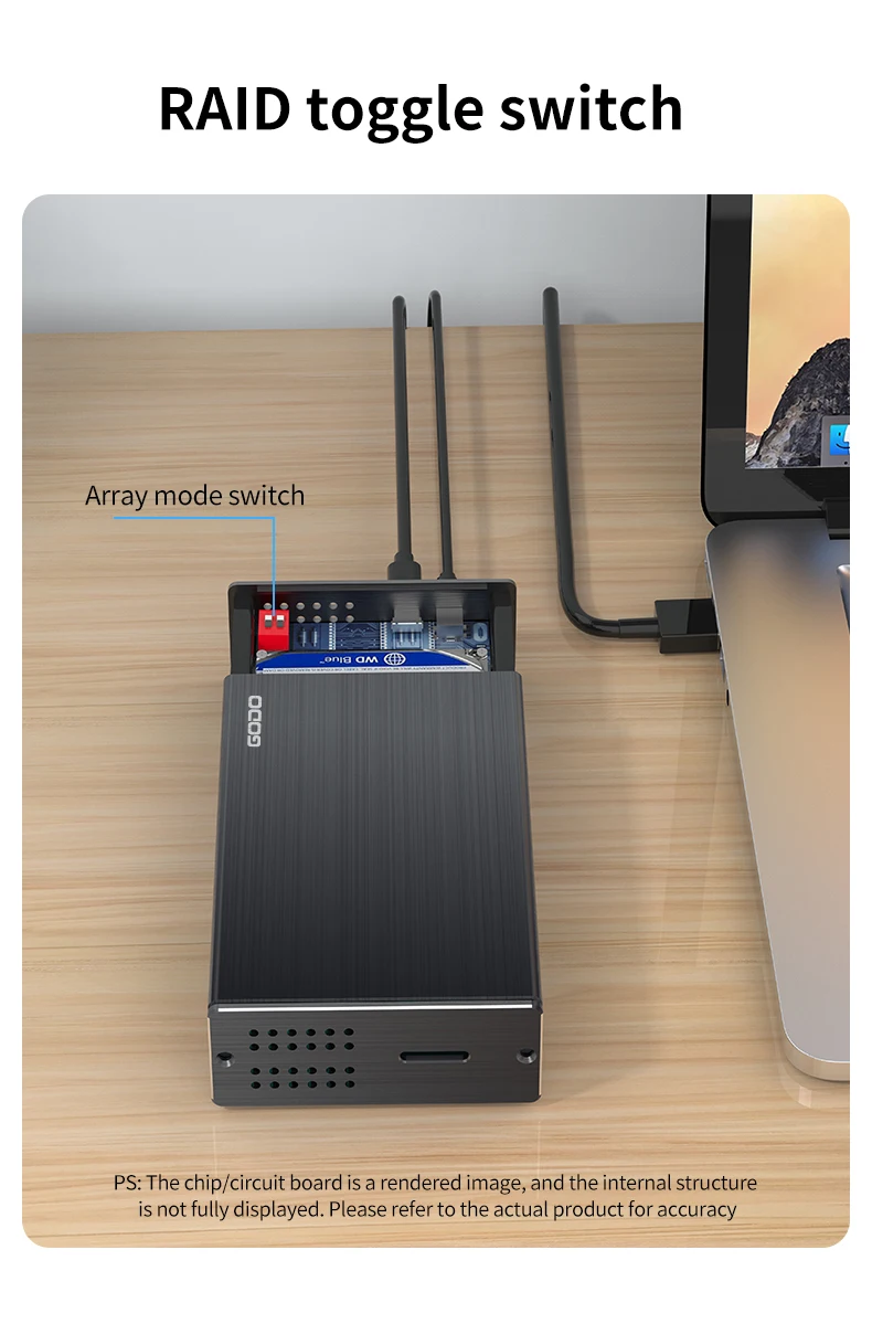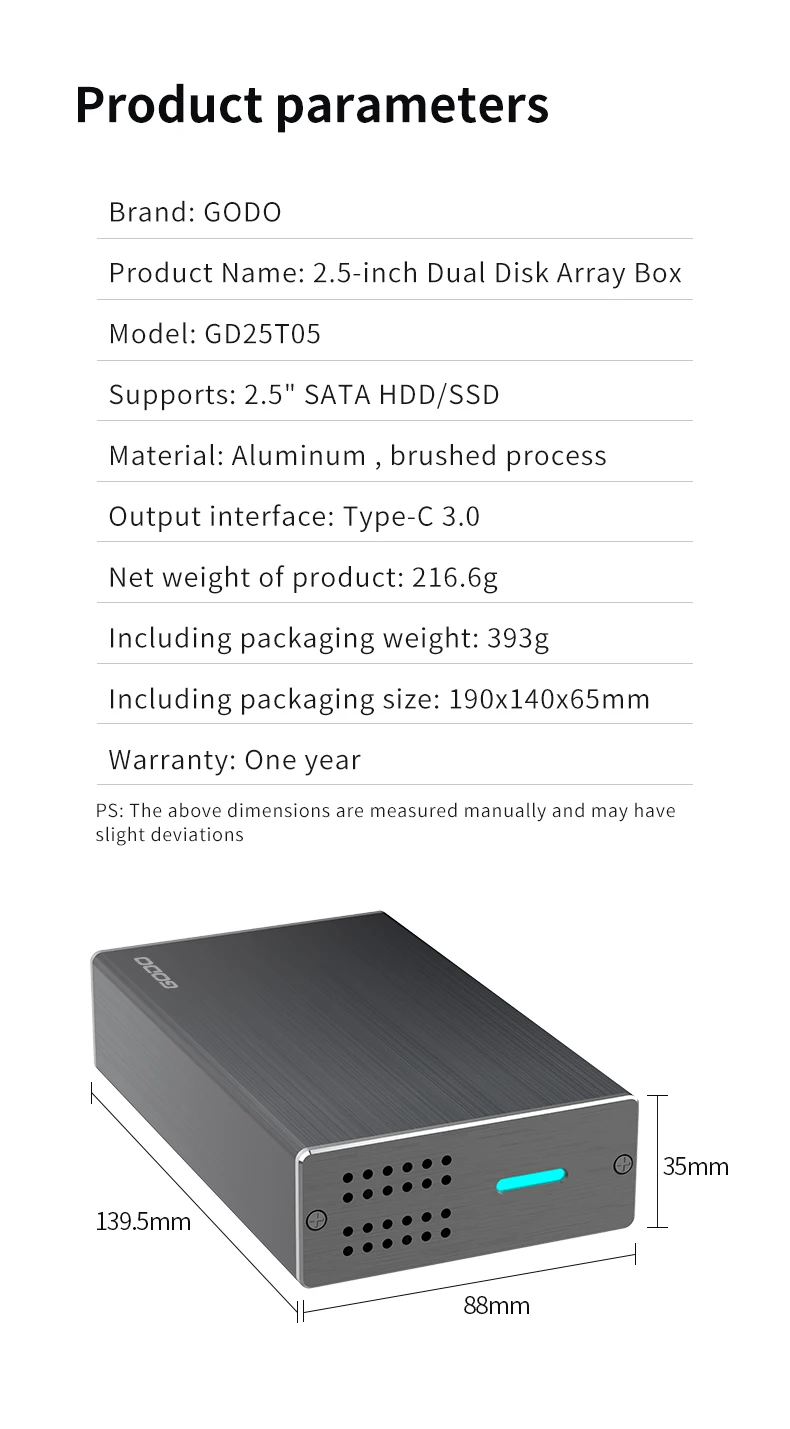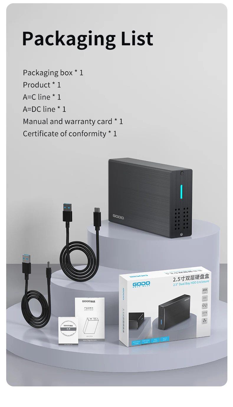 GODO 2.5인치 듀얼 베이 RAID 하드 드라이브 인클로저
