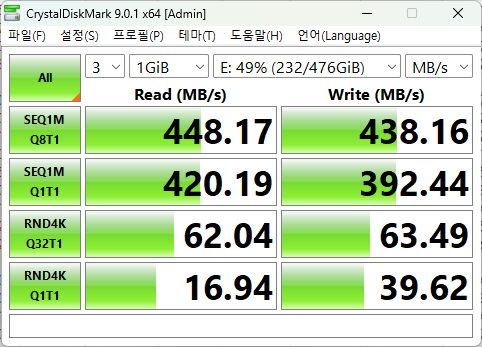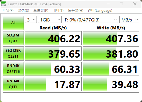 >>>>>2. 하드디스크마크 프로그램에서는 느리게 인식하지만 하드디스크 성능 체크는 잘 작동한다.