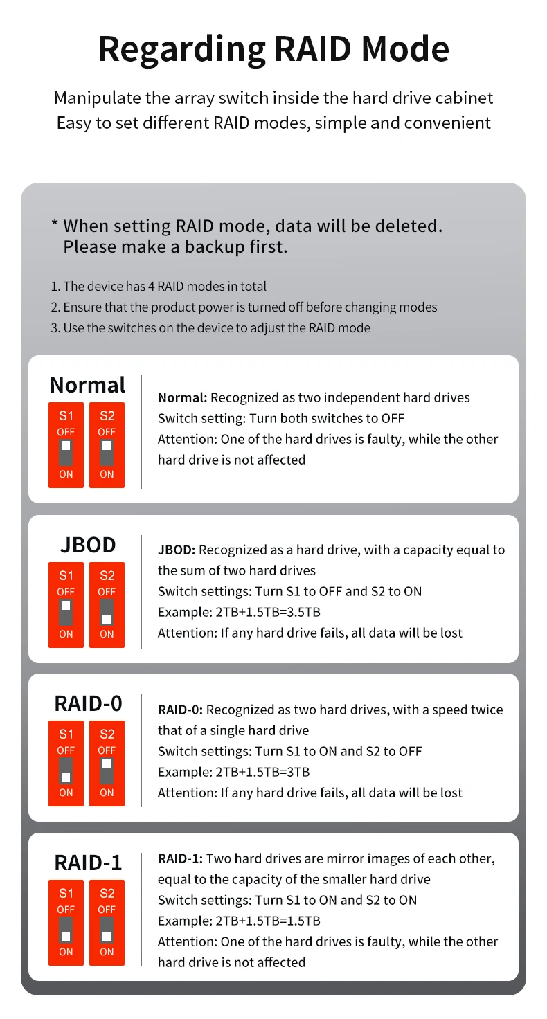 -----> GODO Raid 하드 드라이브 어댑터 지원 4 Raid 모드: