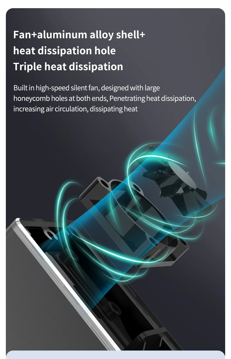 3. 팬의 반대쪽 끝에는 열 방출 구멍이 있어 공기가 빠르게 흐르고 열을 방출할 수 있다.