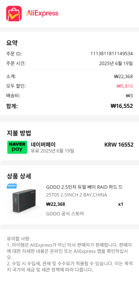 2.5인치 RAID 하드 드라이브 인클로저 x 1