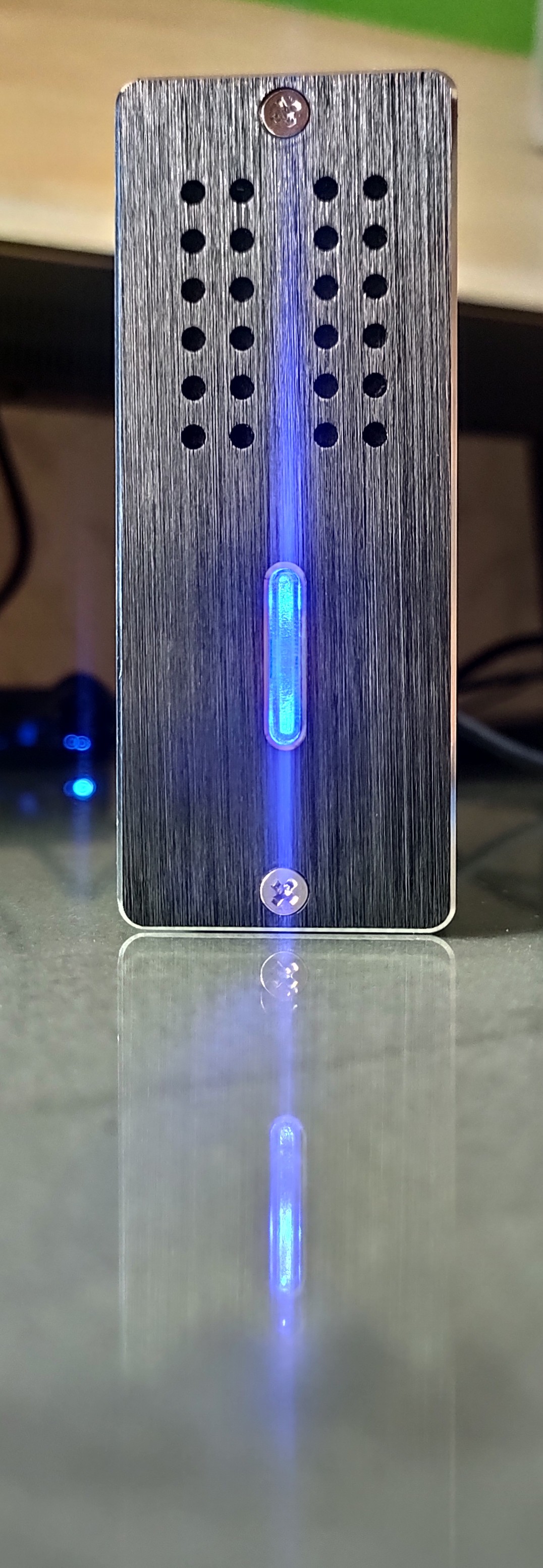 전면 패널을 통한 벌집형 열전도는 방열 팬과 결합되어