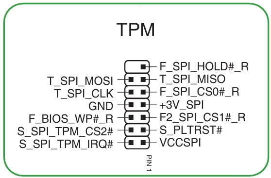 15. SPI TPM 헤더이 헤더는 직렬 주변 장치 인터페이스(SPI)를 사용하는 신뢰할 수 있는 플랫폼 모듈(TPM) 시스템을 지원하여 키, 디지털 인증서, 비밀번호 및 데이터를 안전하게 저장할 수 있습니다. TPM 시스템은 또한 네트워크 보안을 강화하고, 디지털 신원을 보호하며, 플랫폼 무결성을 보장하는 데 도움을 줍니다.