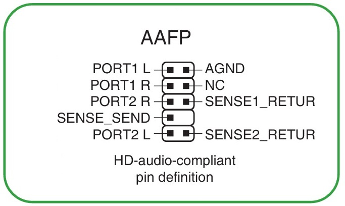 12. 전면 패널 오디오 헤더이 헤더는 HD 오디오 표준을 지원하는 섀시 장착 전면 패널 오디오 I/O 모듈 용입니다.