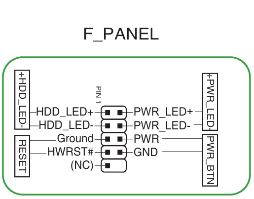 • 하드 디스크 드라이브 활동 LED (2핀 +HDD_LED-)이 2핀 헤더는 HDD 활동 LED용입니다.