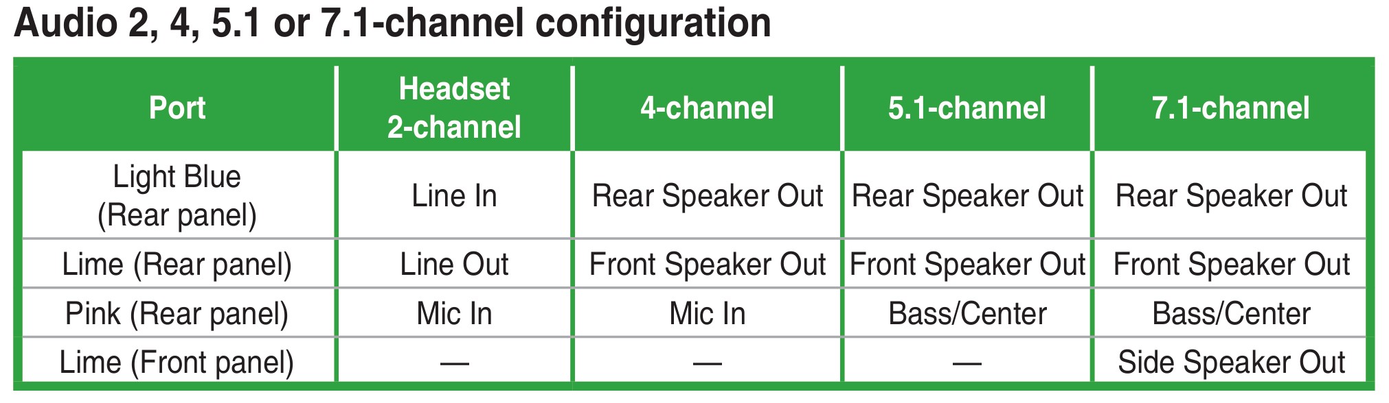 =>7.1채널 오디오 출력을 구성하려면: 7.1채널 오디오 출력을 지원하기 위해 프론트 패널에 HD 오디오 모듈이 있는 섀시가 필요합니다.