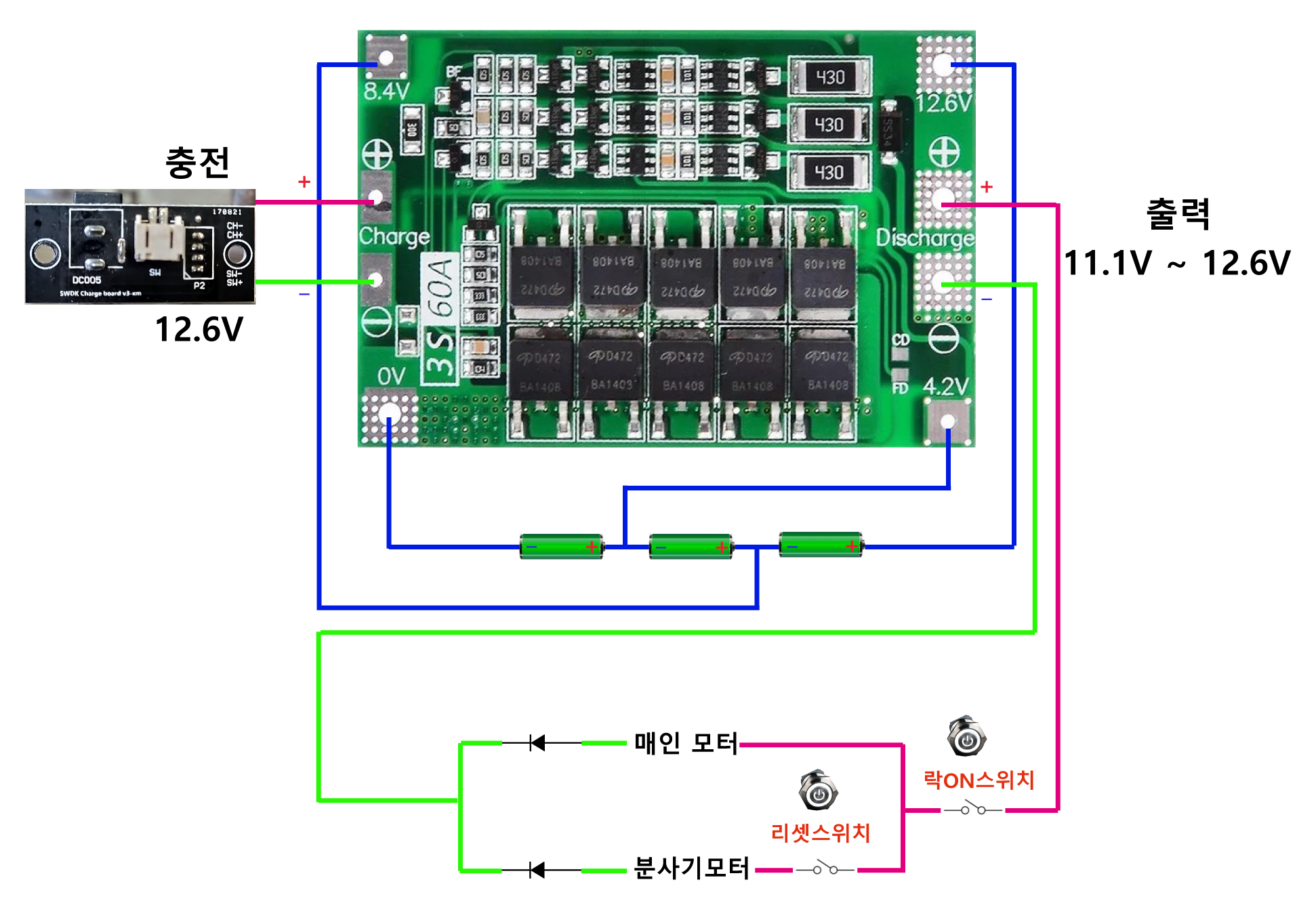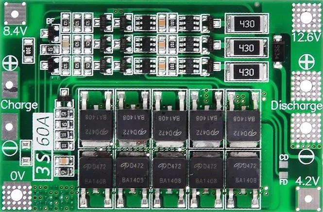 11.1V ~12.6V 충전보드 (BMS 3S 60A 12.6v)