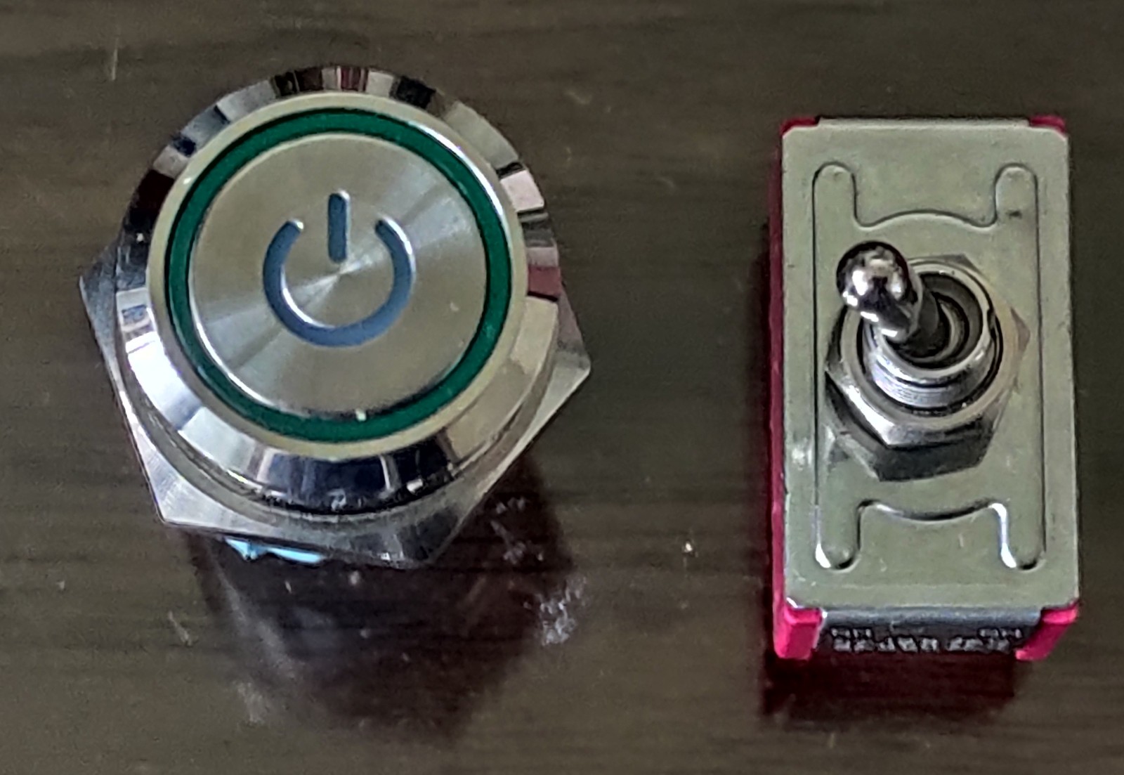 토글스위치와 12mm 푸시 momentary switch가 있어서 그대로 사용했다.(구멍넓힘)