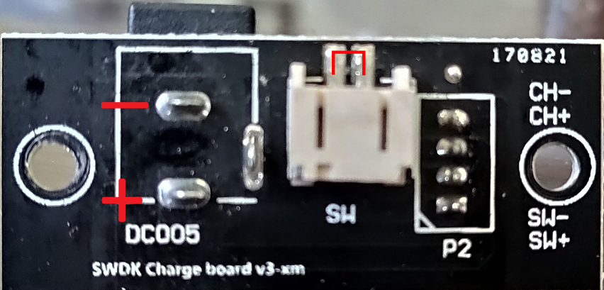 충전보드의 + , - 단자를 아답타 연결부위에 직접 연결한다.
