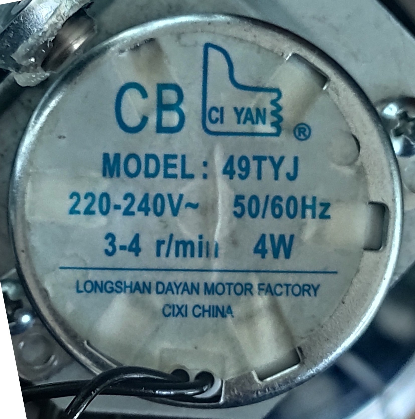 AC220V-240V 49TYJ ( 60Hz CW CWS) 모터 내부 윤활유가 말라 작동 안 해서 발생하는 문제이다.