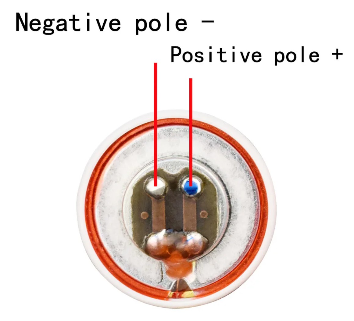 Polarity: red dot for +