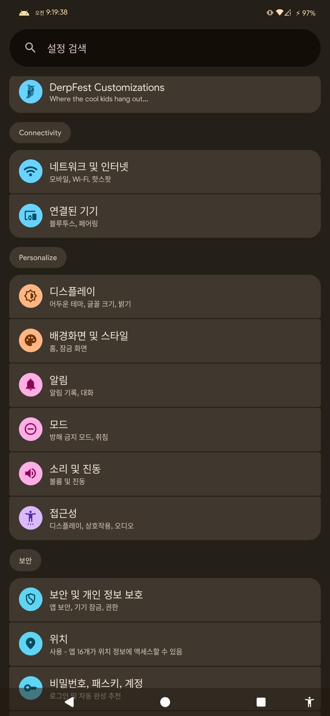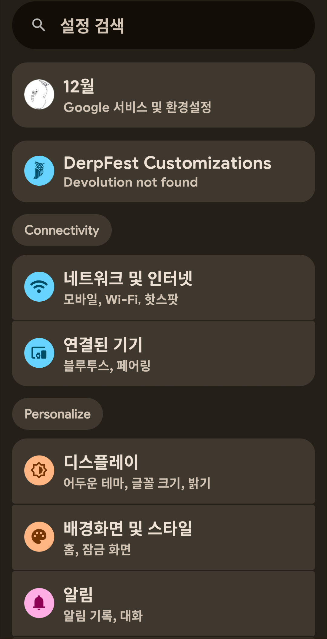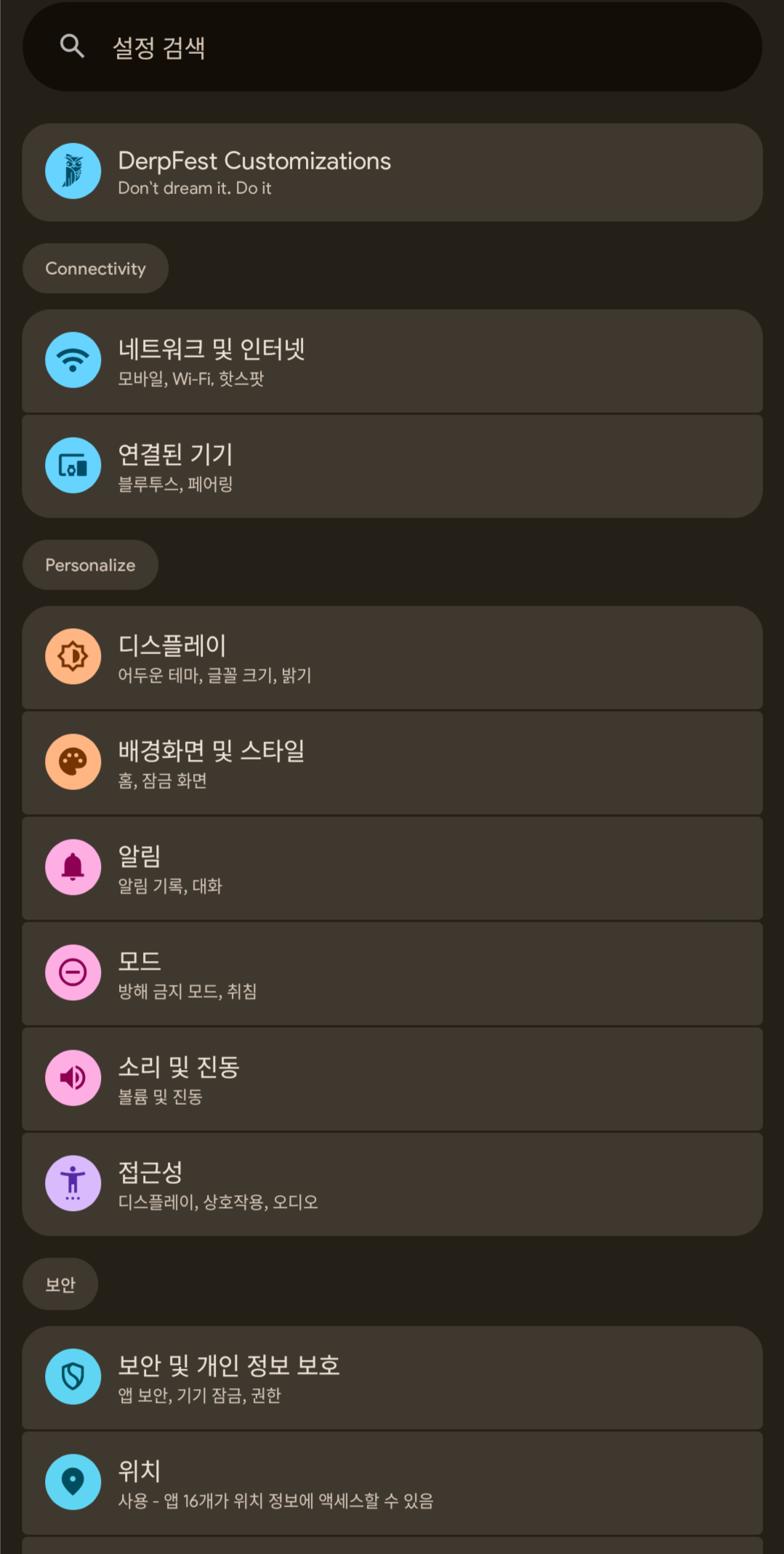 DerpFest 16 롬 (사운드 문제 발생)