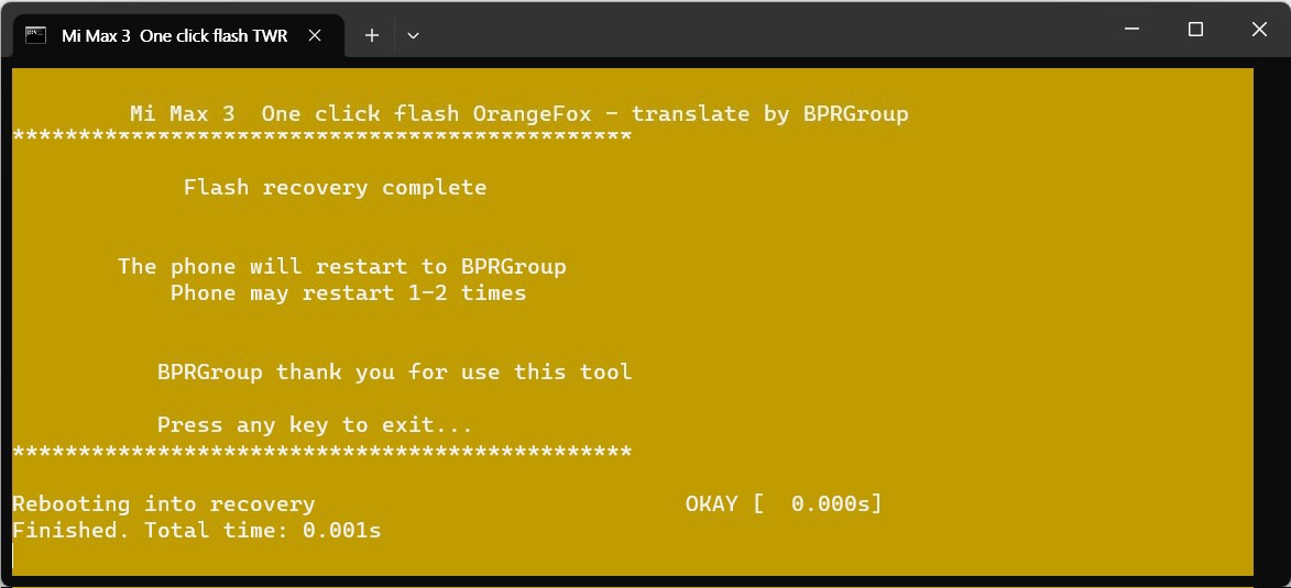 OrangeFox-Violet 이미지 설치 작업이 끝났다.