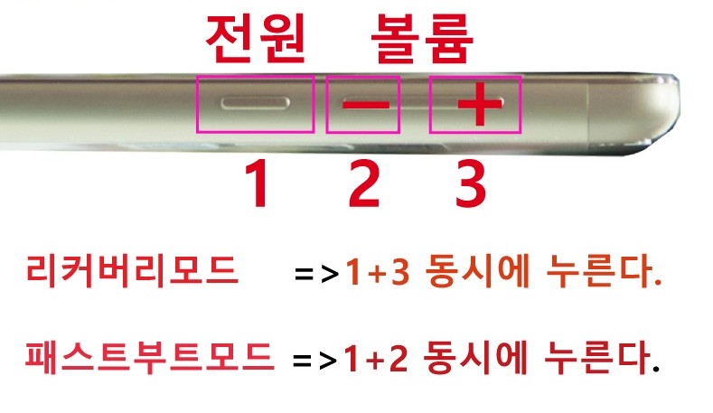전원과 볼륨+ 키를 동시에 눌러 준다.
