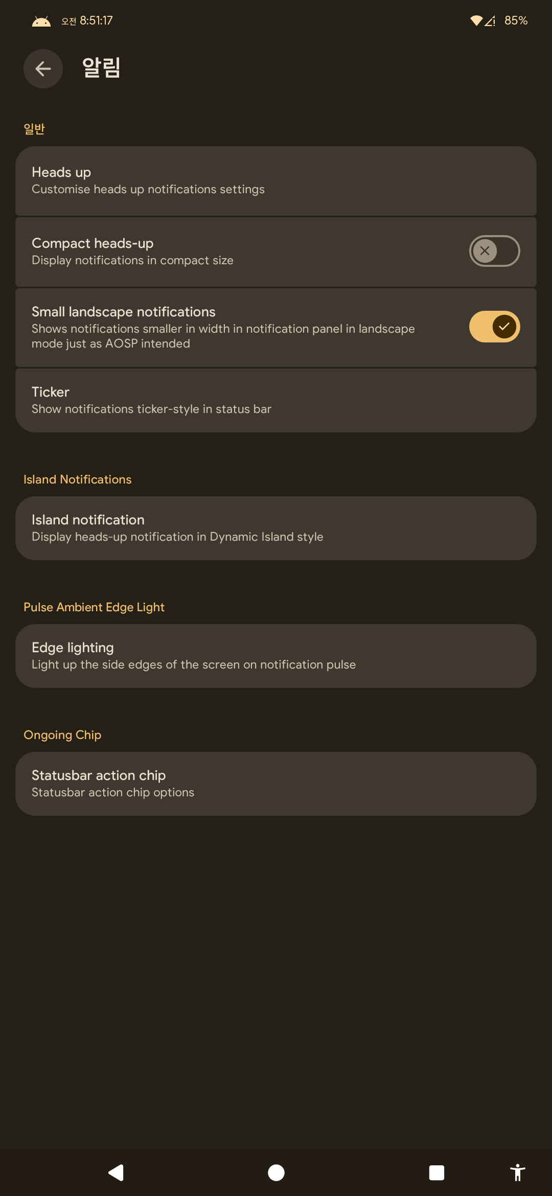 안드로이드 16 롬을 인스톨해야 한다.
