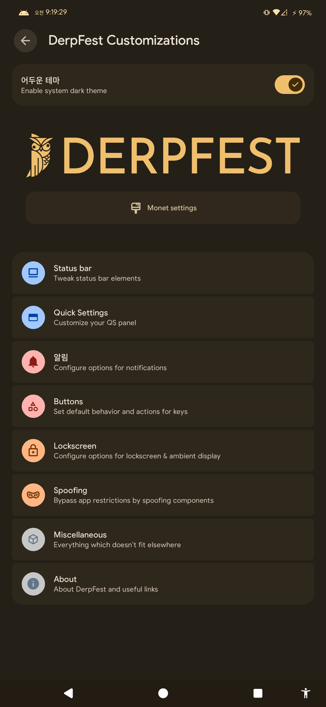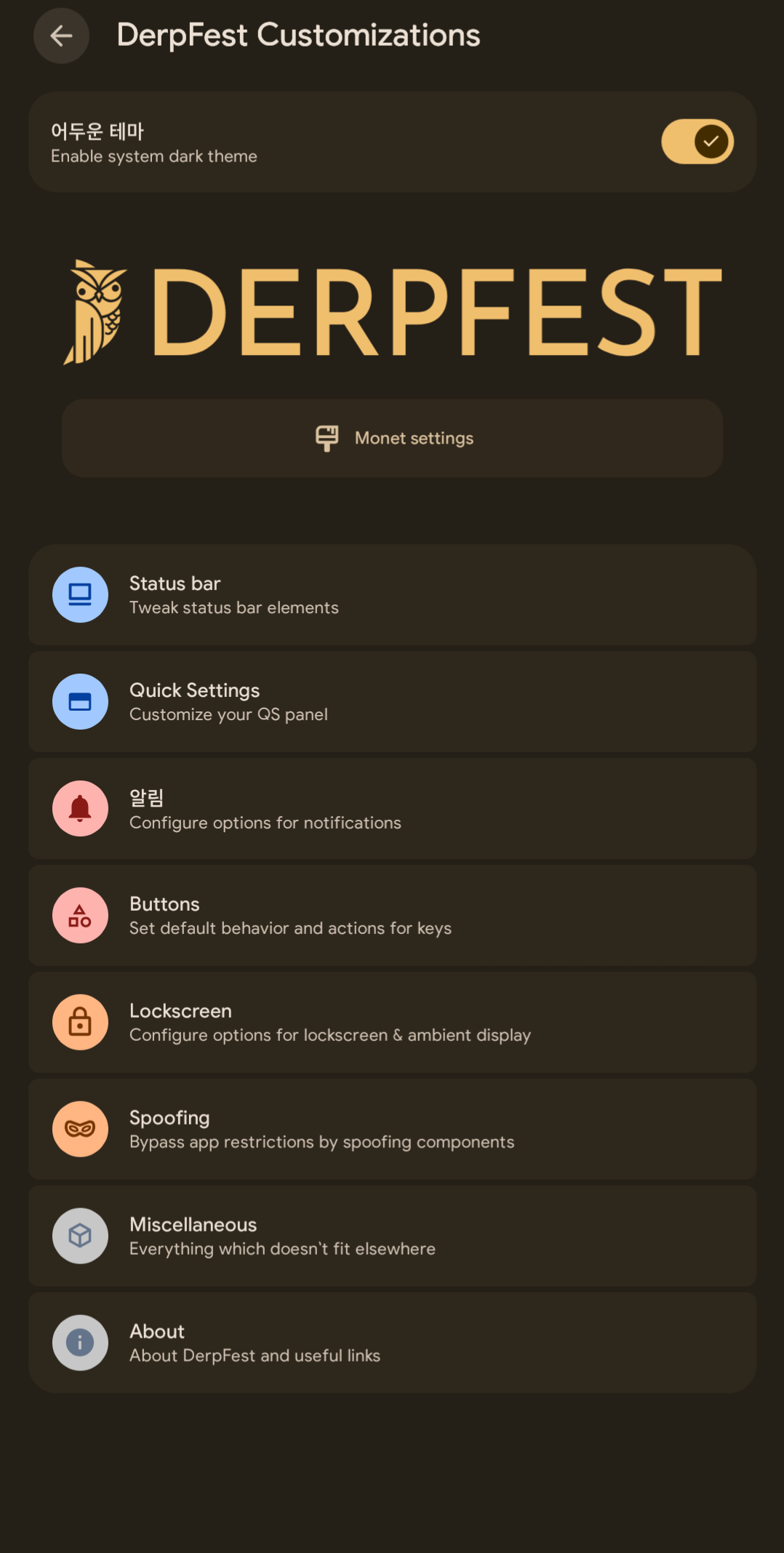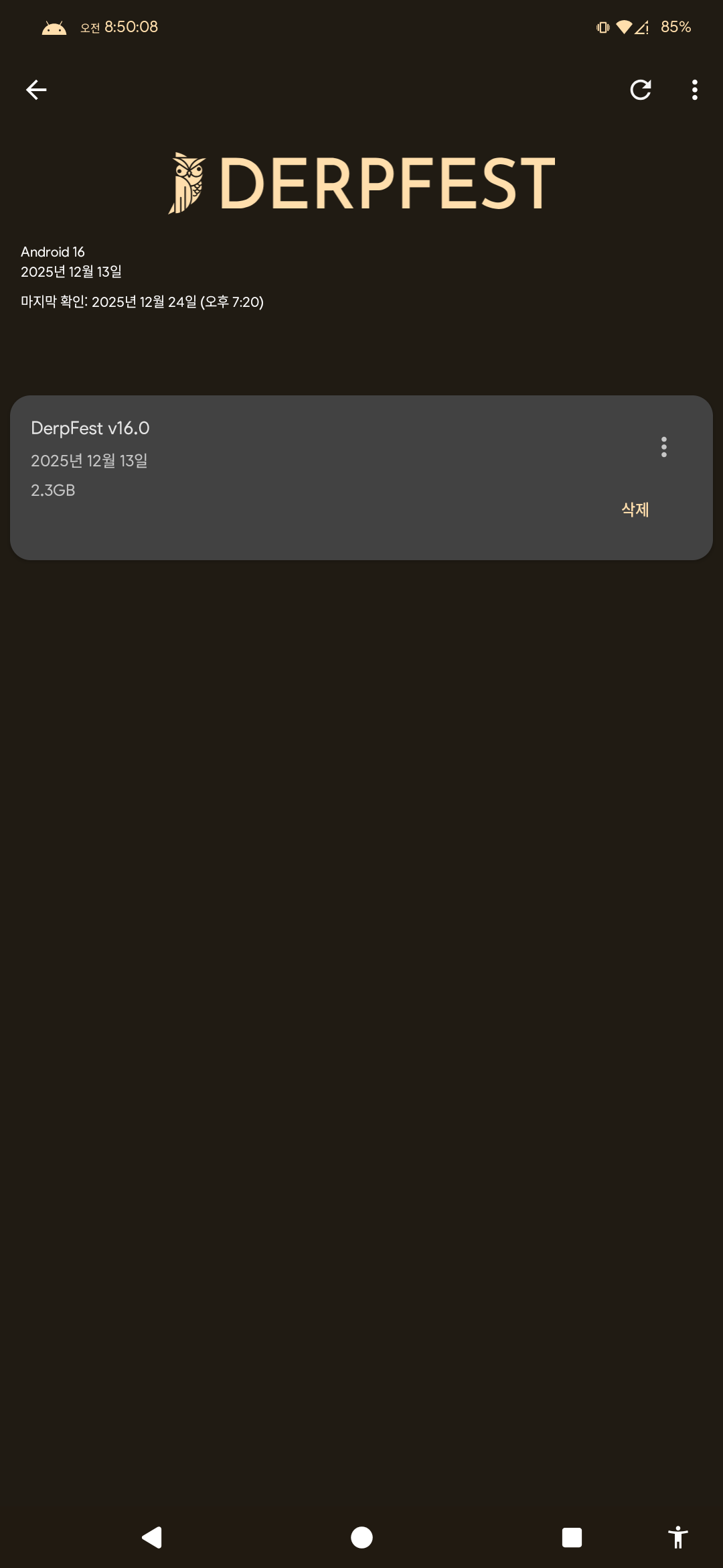 설치 시점 다음 버전 업데이트가 되는 롬은 DerpFest 16 롬 이 유일했다.
