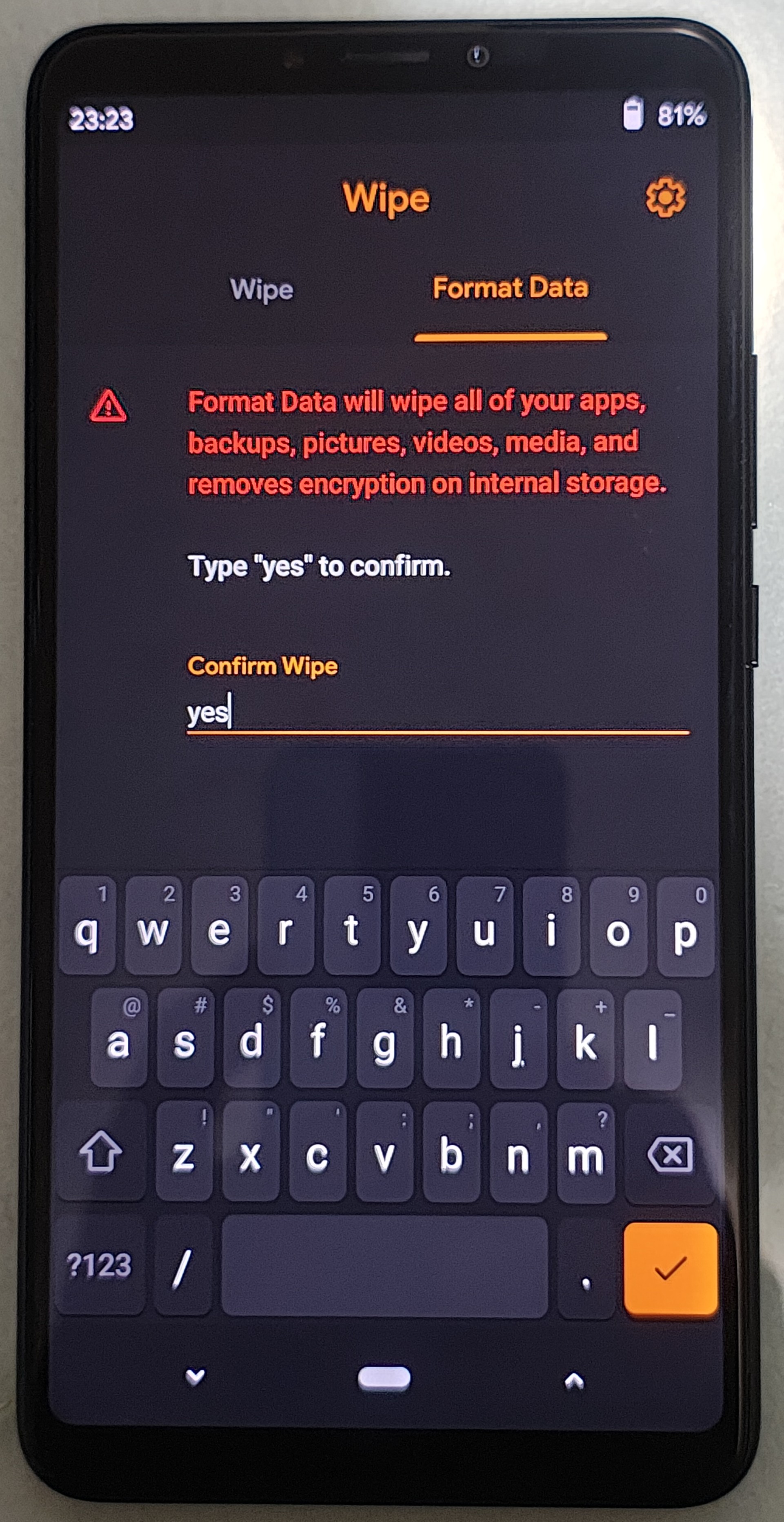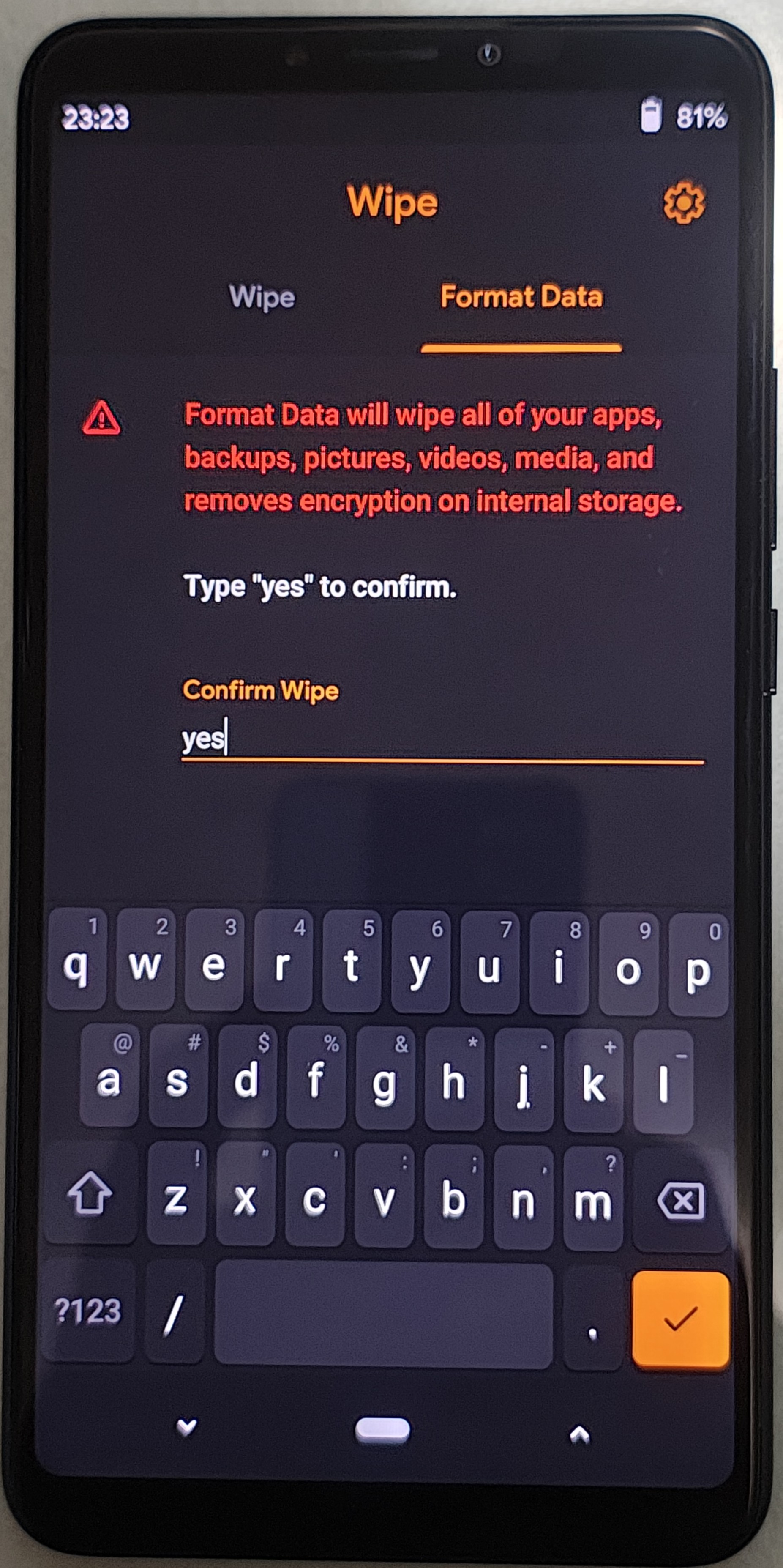 OrangeFox-Recovery 설치 후 format을 진행해 주면 된다. ==>12.