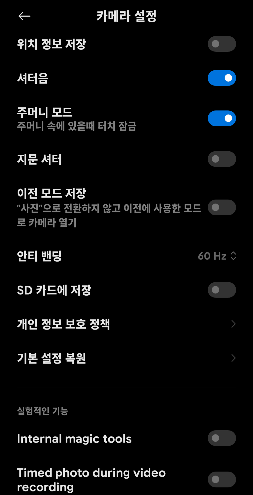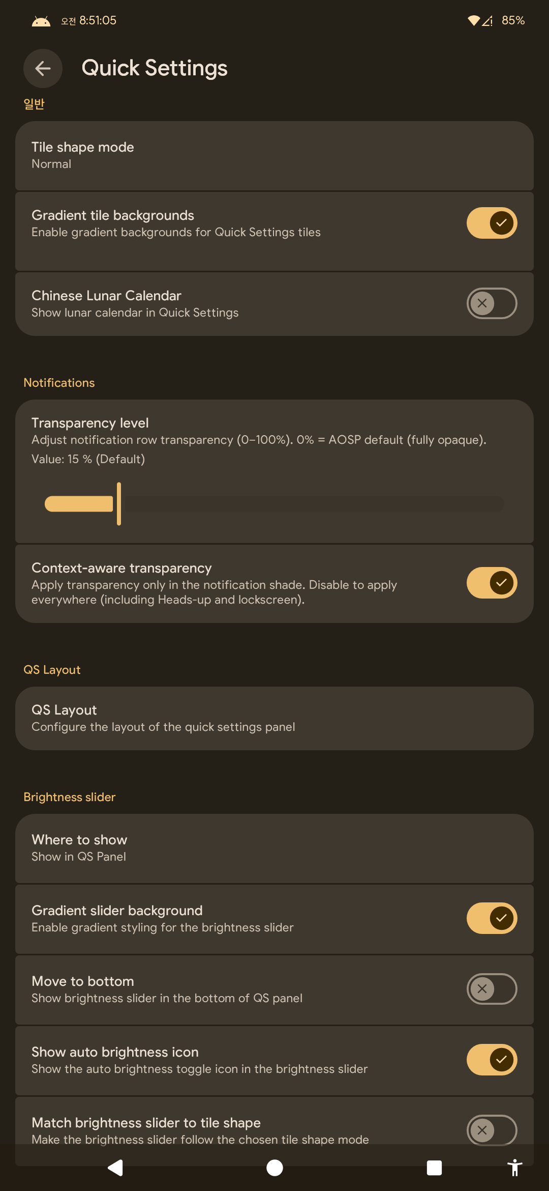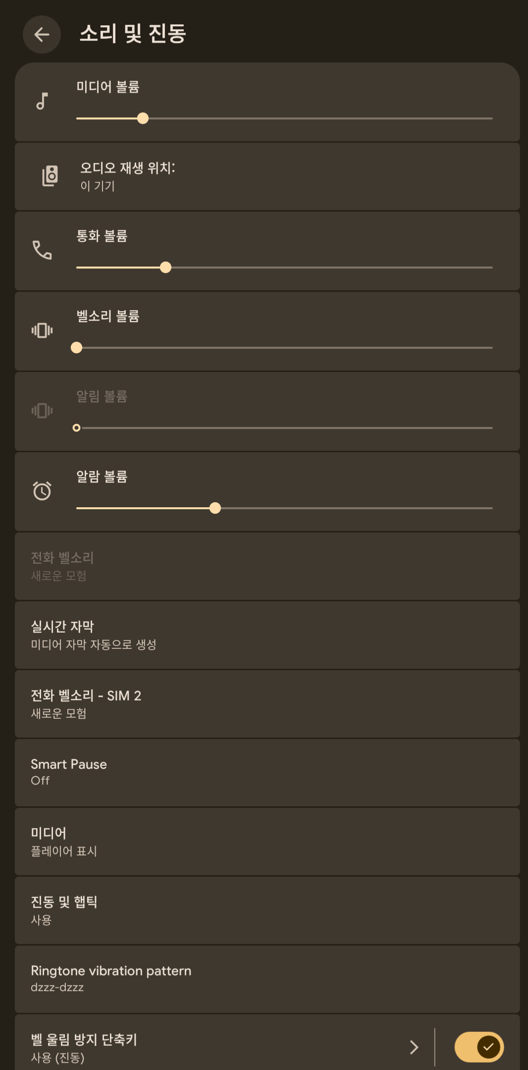 => 사운드는 샤오미 스마트폰 설정과 가장 비슷하게 설정되어 있음