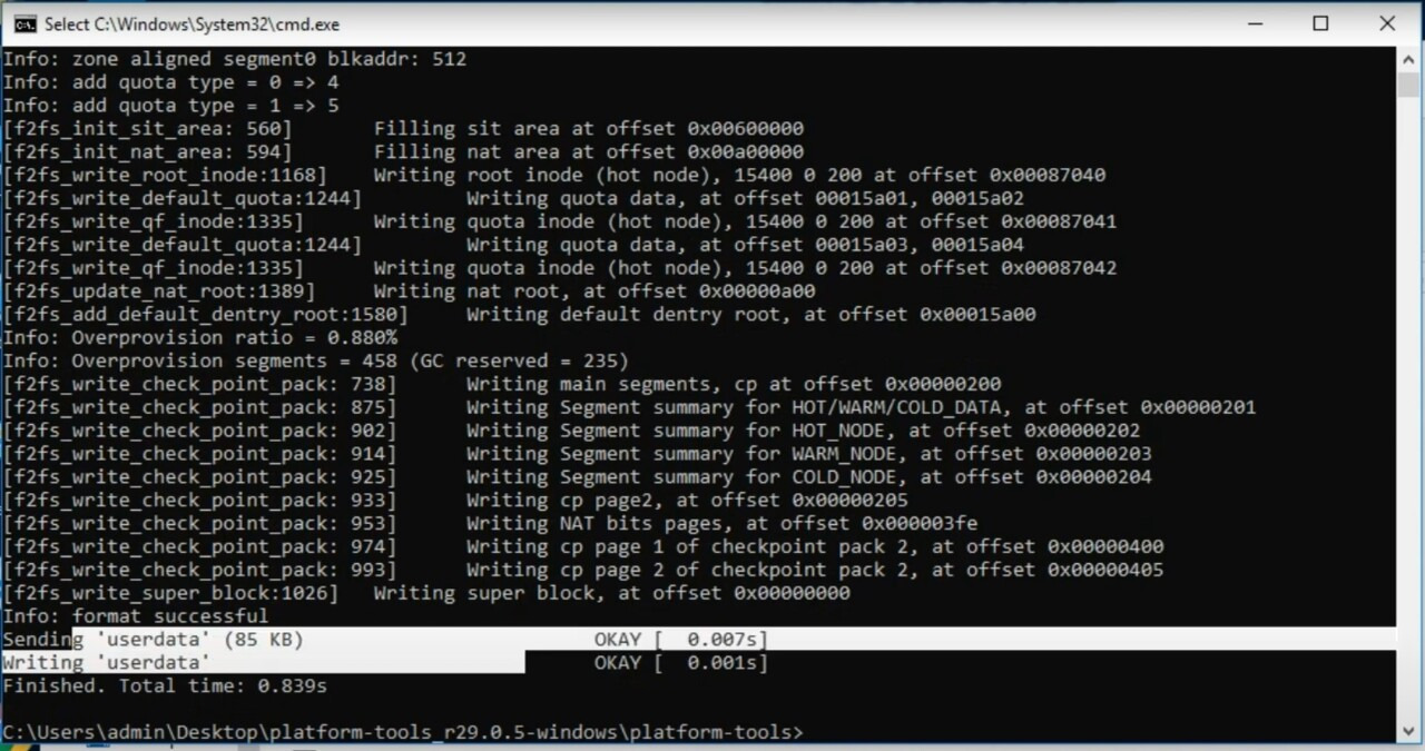 fastboot device에서 장치 인식을 정상적으로 했으므로 진행된다.