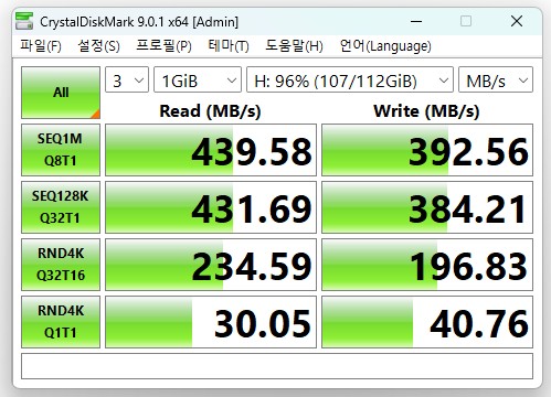 USB 3.0 속도(SSD) USB 2.0 속도(SSD)