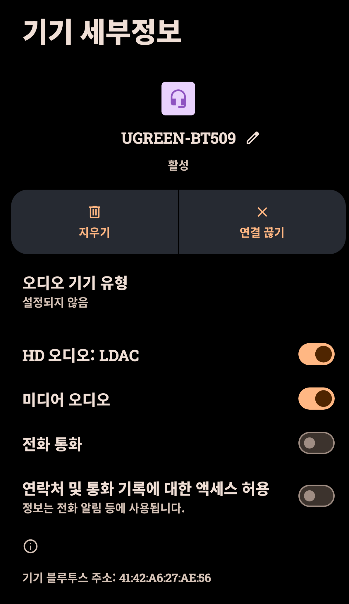 LDAC 코덱에서는 한 개의 기기만 연결할 수 있다.