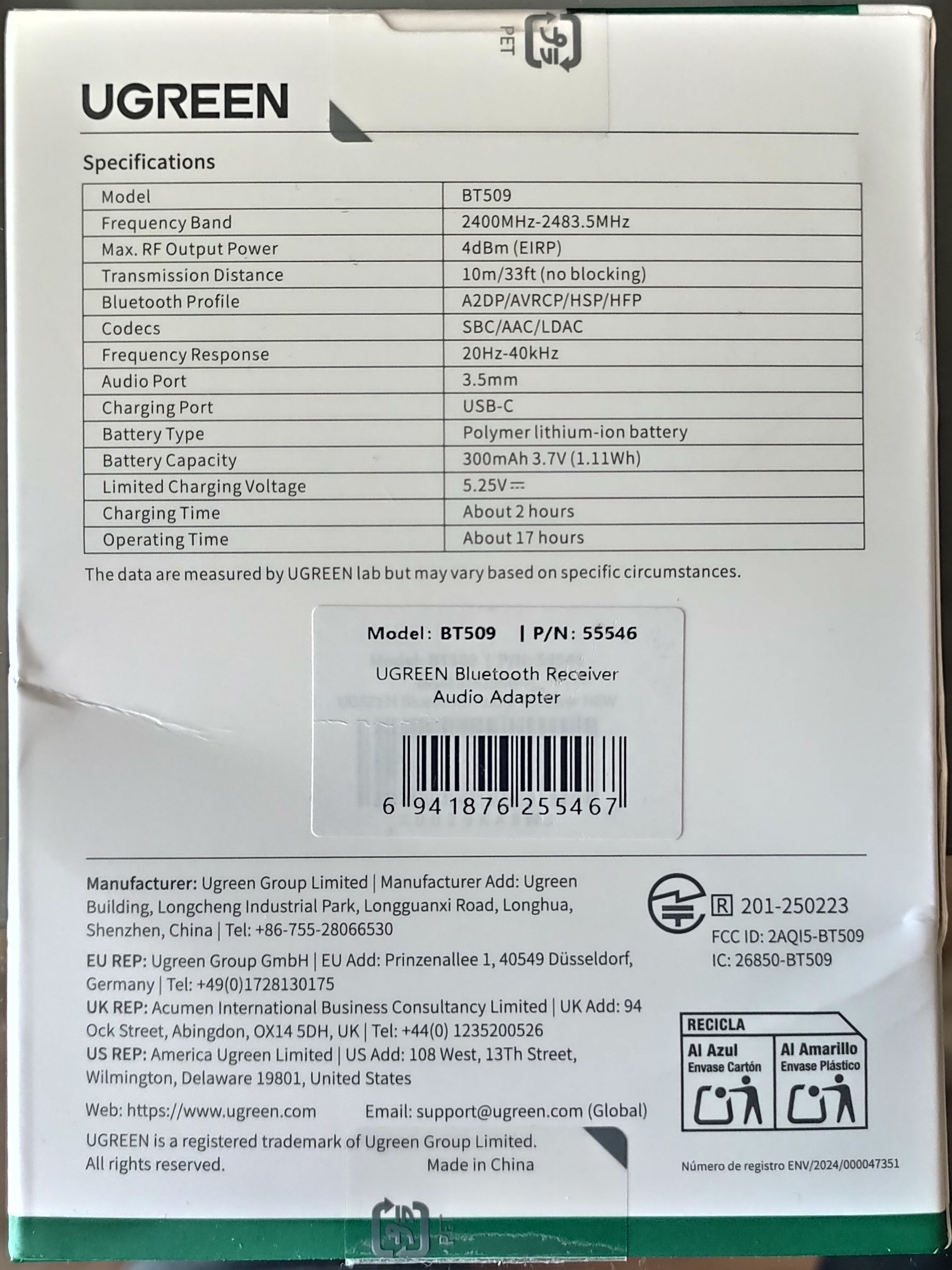 UGREEN BT509(LDAC이 포함된 Bluetooth 6.0 수신기)