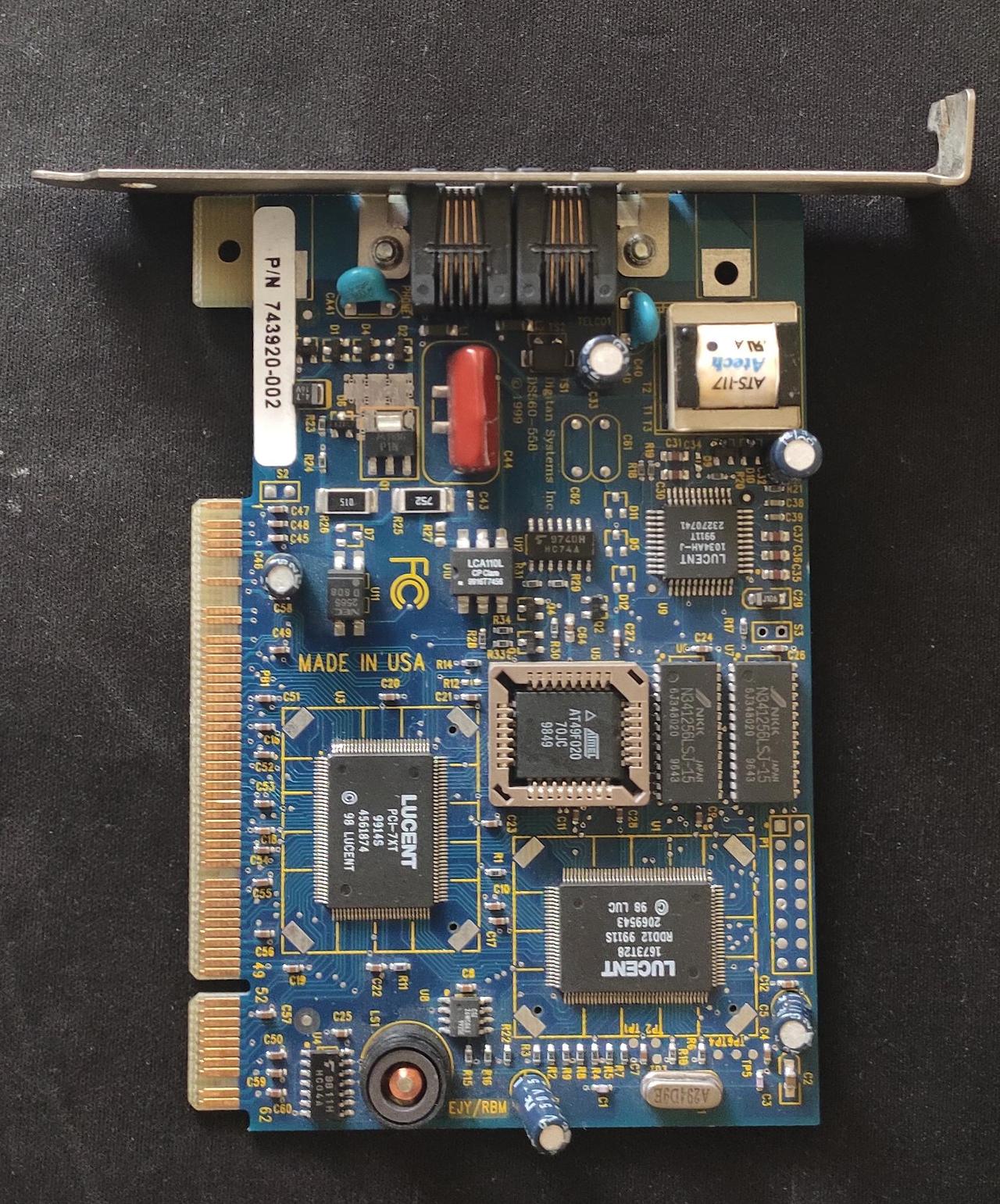 Digiant Systems, Inc.의 Lucent 1673TV8 V.90 56K PCI 데이터/팩스 하드웨어 컨트롤러 기반 내장형 모뎀